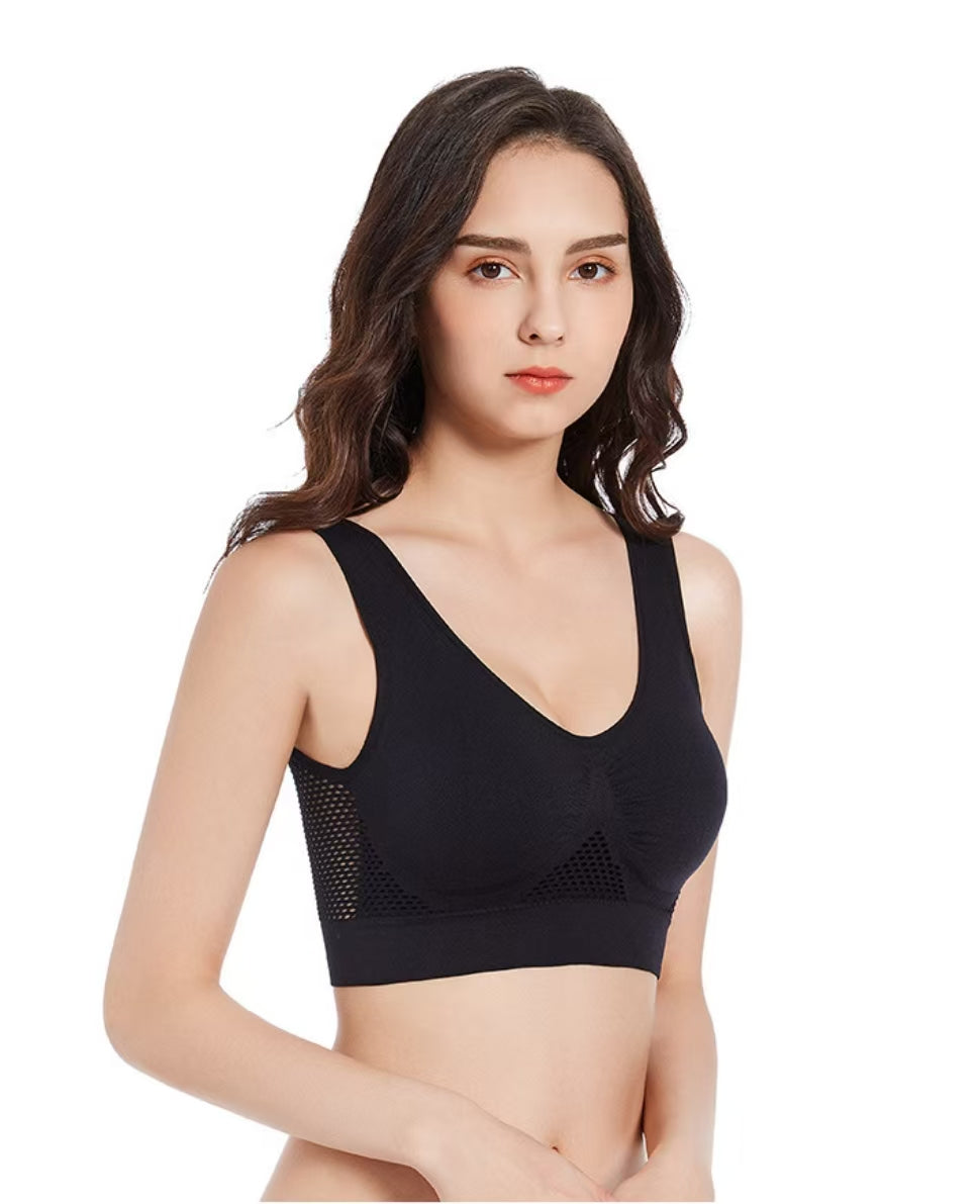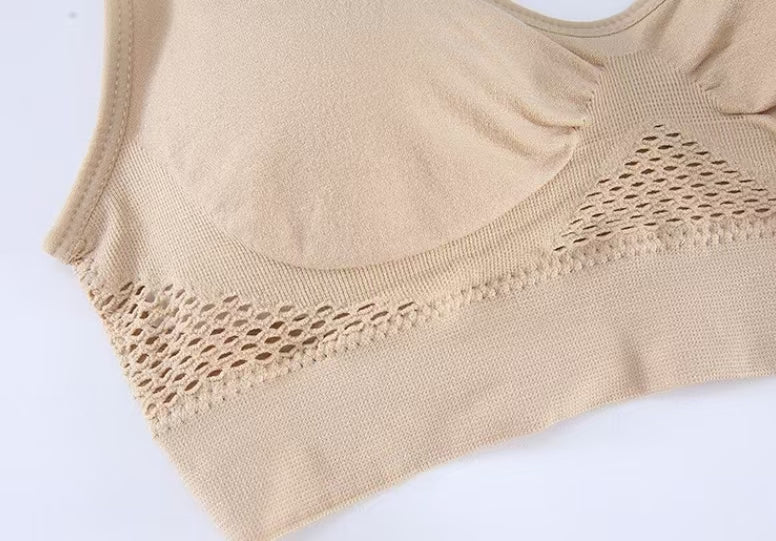 L’innovazione incontra la morbidezza. Grazie alla speciale fibra ultra-stretch, questo reggiseno segue ogni tuo movimento adattandosi perfettamente alla tua silhouette. La struttura senza ferretto garantisce un sostegno impeccabile per tutto il giorno, senza rinunciare alla flessibilità. Il pannello posteriore con micro-fori traspiranti facilita il ricircolo dell'aria, prevenendo irritazioni e mantenendo la pelle asciutta. Finalmente puoi dire addio a quei fastidiosi segni rossi causati dalle strutture rigide!